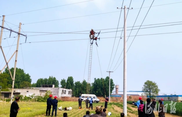 供電公司的工作人員正在拆除掛在高壓電線上的無人機(jī)4月23日,河北省石家莊市行唐縣一村民在駕駛無人機(jī)噴灑農(nóng)藥時,無人機(jī)因動力不足出現(xiàn)故障,無人機(jī)降落在高壓線上。最后供電公司...